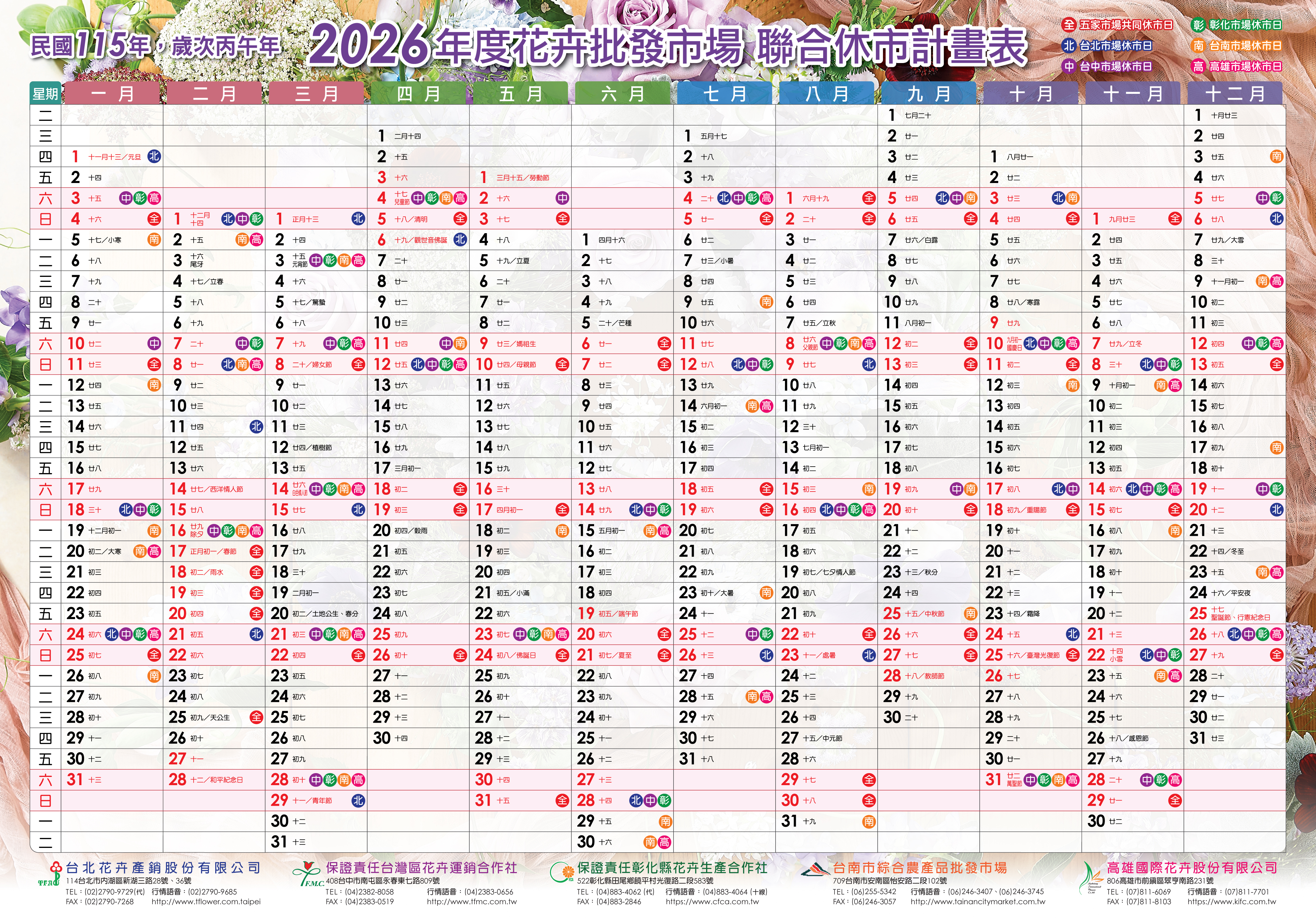 全年度休市表